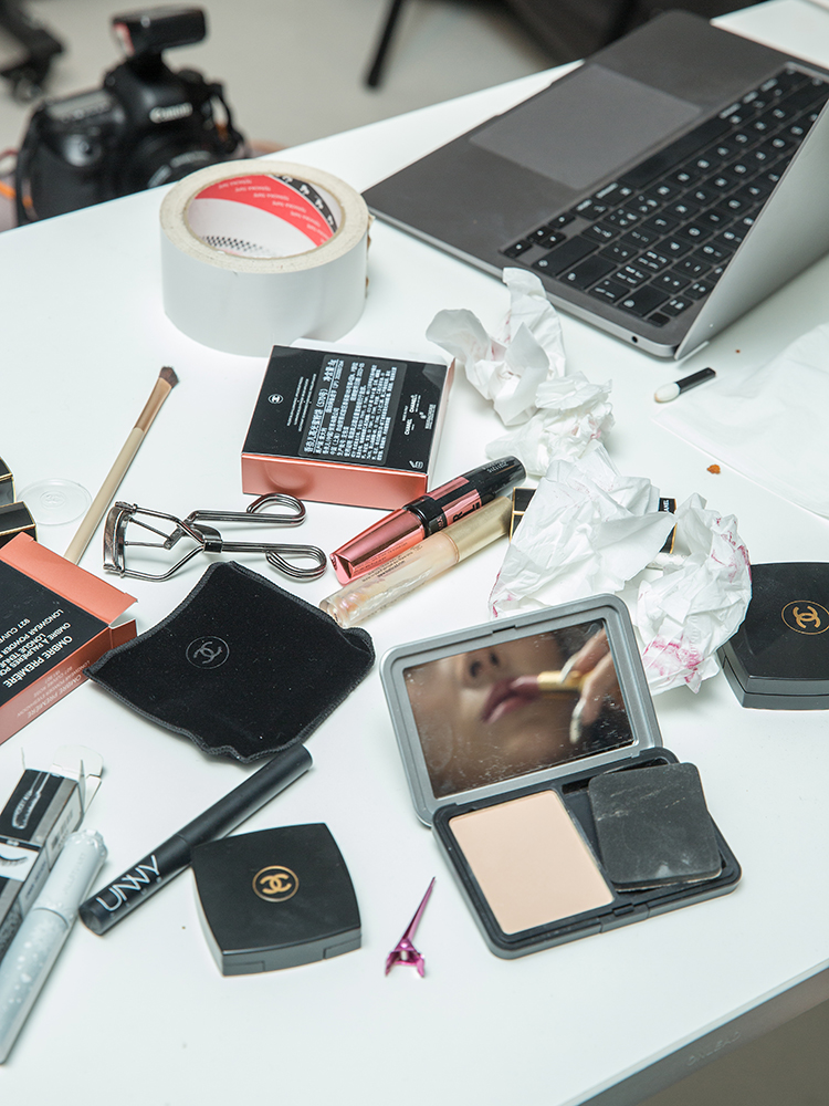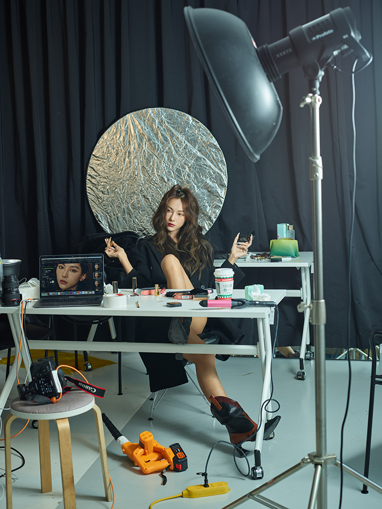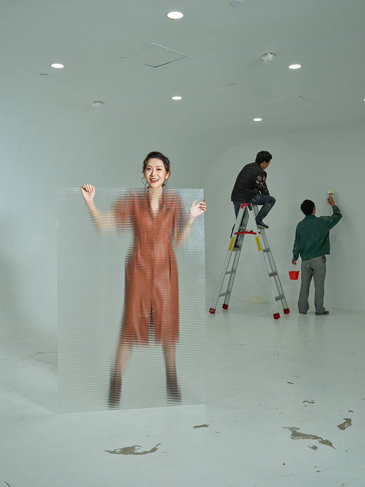 When taking photos for Peng Tewu, a top internet celebrity in the beauty and fashion district of Ruhnn, Studio 4 was undergoing wall painting and maintenance.