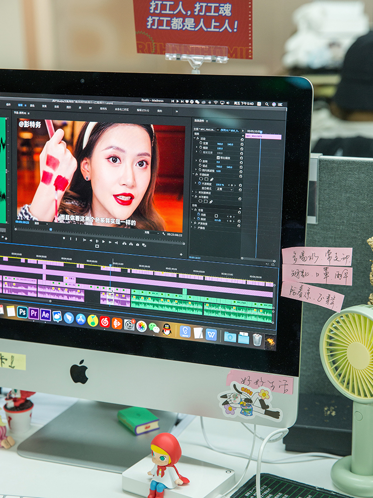 The office desk of video editor Wang who cuts videos for Peng Tewu.