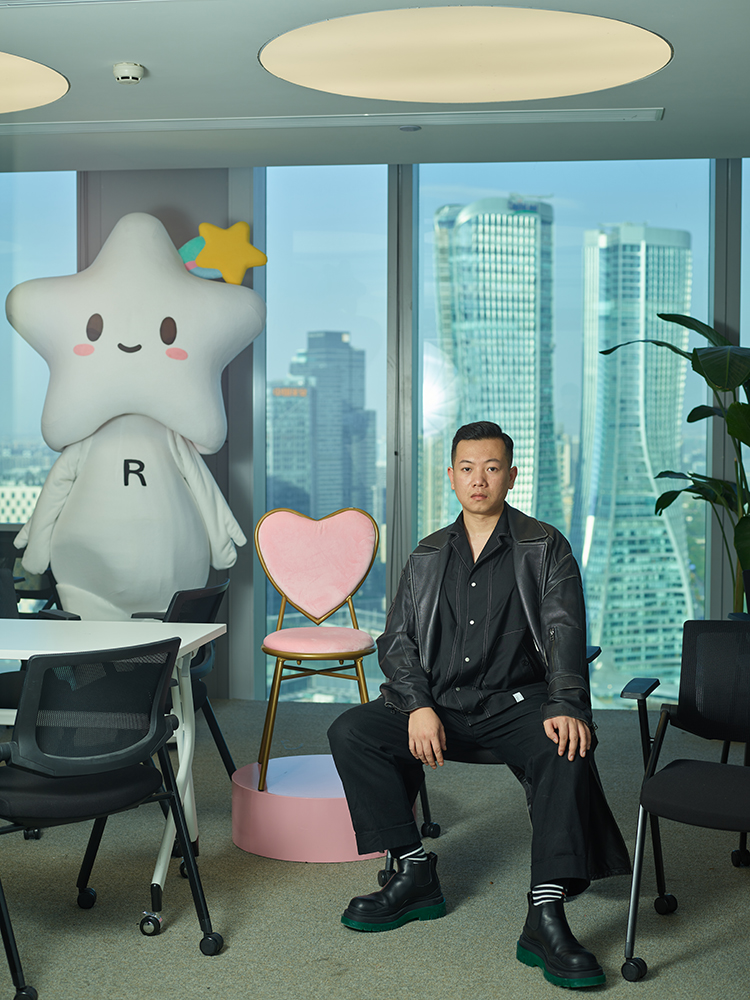 Nicky, the Operations Director of Ruhnn. In the conference rooms on each floor of Ruhnn, there is a pink chair shaped like a “like” heart, symbolizing the fan base.