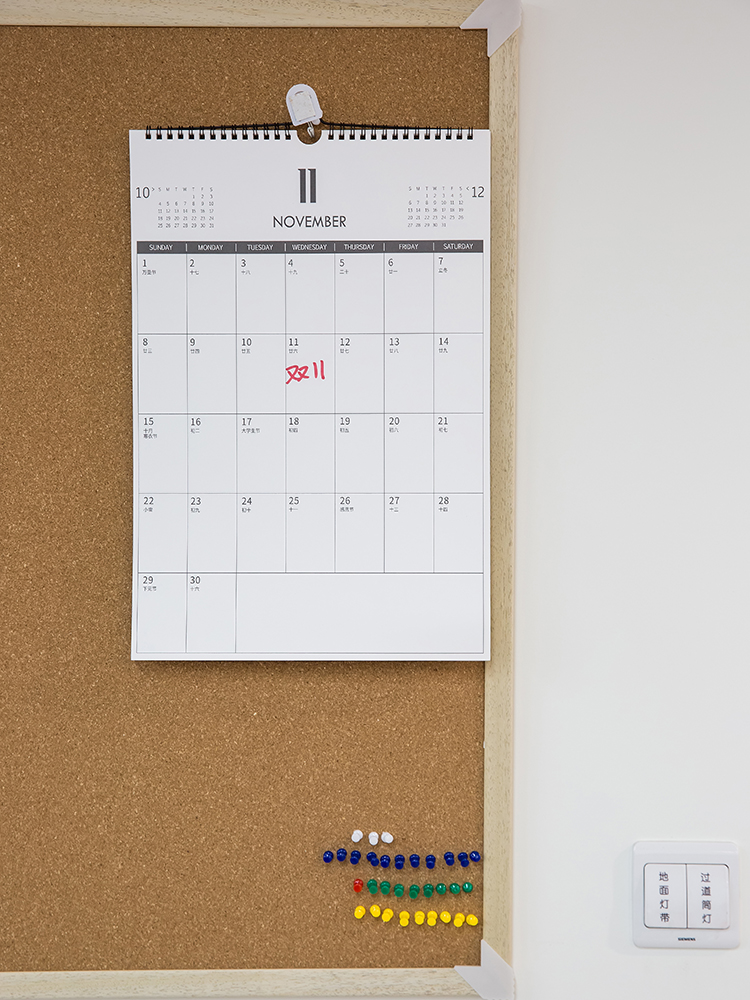 办公区的日历圈出了双十一的日子。事实上,以视频和图文生产为主的网红们基本会将双十一的工作日历前置近两个月,如今的拍摄内容已经排到十二月份的圣诞季。
