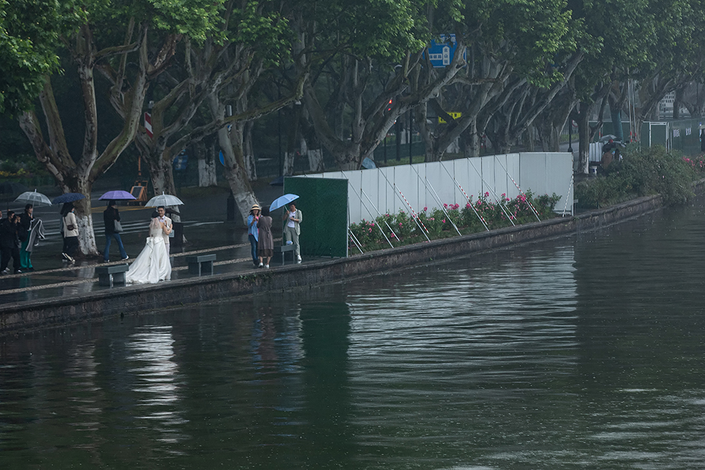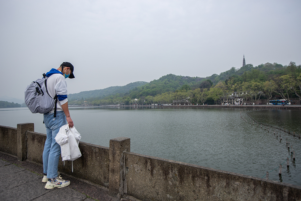 2020年4月4日,杭州,上午10时,防空警报鸣响,西湖边游客肃立默哀。国务院4月3日发布公告,为表达全国各族人民对抗击新冠肺炎疫情斗争牺牲烈士和逝世同胞的深切哀悼,决定2020年4月4日举行全国性哀悼活动。