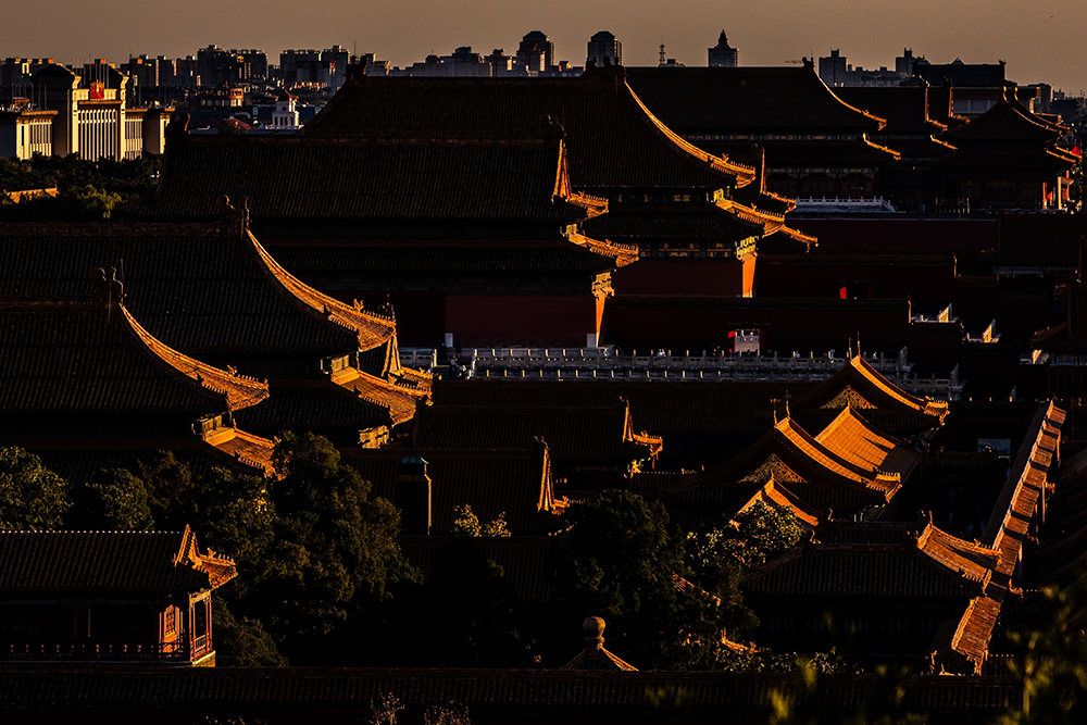 2025年10月26日,北京,日落时分的故宫。2025年是故宫博物院建院100周年。