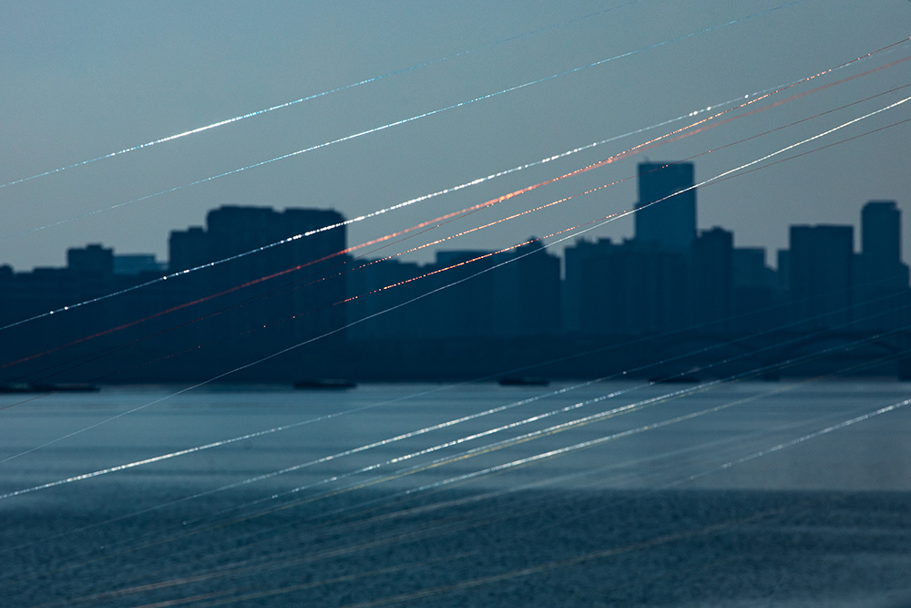 2025年11月20日,杭州,钱塘江边垂钓者们抛出的鱼线。